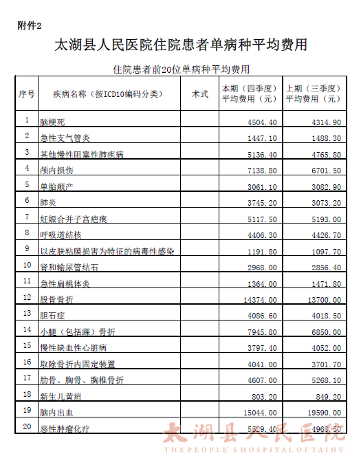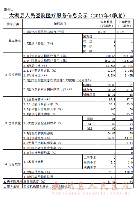 太湖縣人民醫(yī)院醫(yī)療服務(wù)信息公示(2017年4季度)